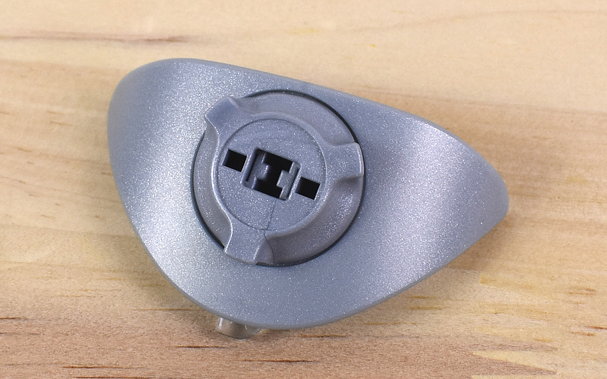 手のひらサイズの小さなパッケージを明けると、中には7(長さ)×4.5cm(幅)ほどの小さなアイテムが。中心にダイヤル式のパーツがついていて、カバーを外すと靴紐を通す穴が現れます。