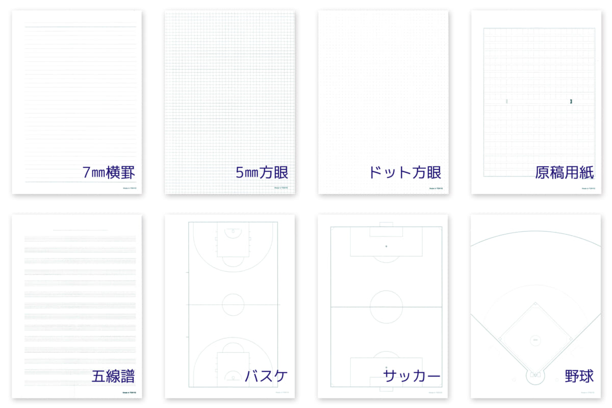 紙は、一般的な上質紙から、高級ノート用の「OKフールス」、手帳で人気の「トモエリバー」、銀行業務用の「バンクペーパー」など12種類。罫線は横罫や方眼から五線譜、400字詰原稿用紙を含む8種類。罫線に関しては希望を伝えてのカスタムも可能なので、まぁ好き放題という感じだ。