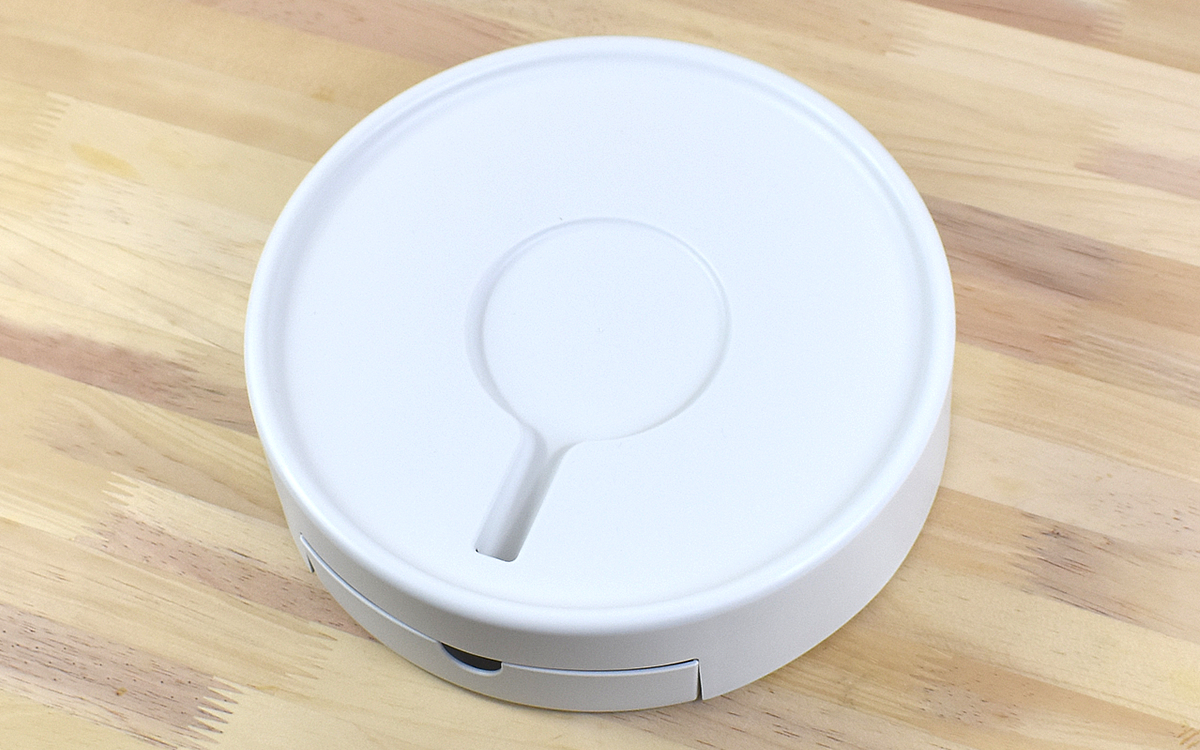 トレーの真ん中に浅めのくぼみと排水用の穴が開いていて、鉢から溢れた水がトレーの内側に流れていく仕組み。さっそくトレーの上に小さめの鉢を乗せて、いつものように水やりをしました。しばらく待つと水が少しずつ鉢から排出され、くぼみを通って穴の中へ。トレーのフチには段差があるため、水が外側に漏れる心配はありません。