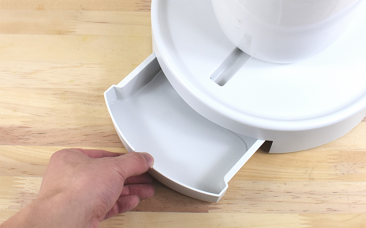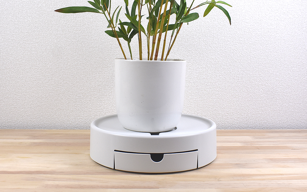 引き出しの中に水が溜まってきたら、そっと取り出して捨てるだけ。トレーや鉢を動かさずに処理できるため、あっという間に作業が終わりますよ。