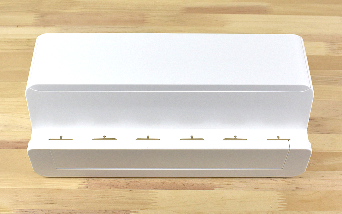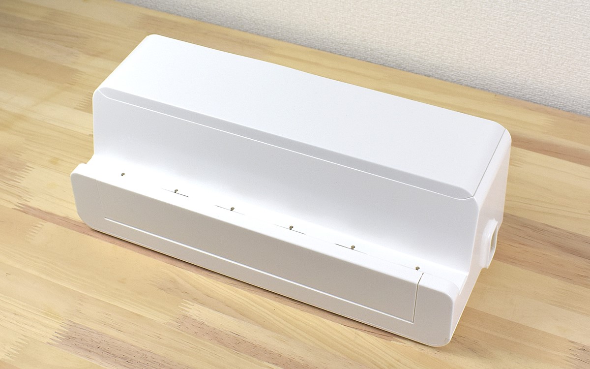 同商品は、真っ白なスチロール樹脂で作られたケーブル収納用のボックス。サイズは38.5(幅)×15.1(奥行)×13.9cm(高さ)と大きいものの、どんなインテリアにも合わせやすいシンプルなデザインです。