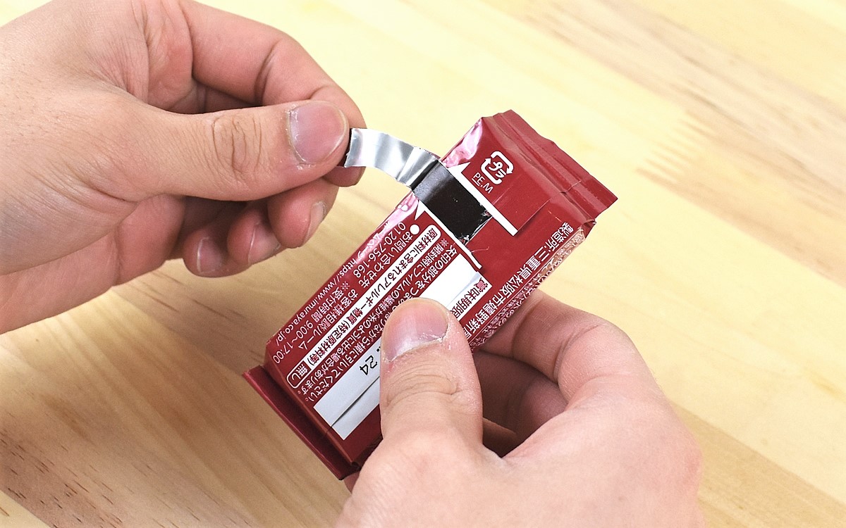 同商品は、86(縦)×82(横)×37mm(高さ)ほどの小さな箱に入ったようかん5本セット。パッケージと個包装は簡単に開けられるように工夫されていて、お年寄りや力の弱い人でも簡単に開けられます。