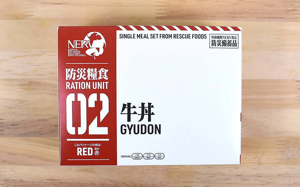 災害食や介護食を販売している「ホリカフーズ」から、人気アニメ「エヴァンゲリオン」シリーズとコラボした「特務機関NERV指定 防災糧食」が登場。開発には防災アプリの開発を手掛ける「ゲヒルン」も参加し、アニメに登場する「特務機関NERV」の雰囲気を忠実に再現したパッケージになっています。「ゲヒルン」が運営するTwitterで同商品が紹介された際、約1万3000件の「いいね」を獲得。「備蓄品とは思えないかっこよさ」「箱だけでめっちゃテンション上がる」といったコメントが寄せられました。今回は5種類あるラインナップの中から、「牛丼」をピックアップしてレビューしていきましょう。
