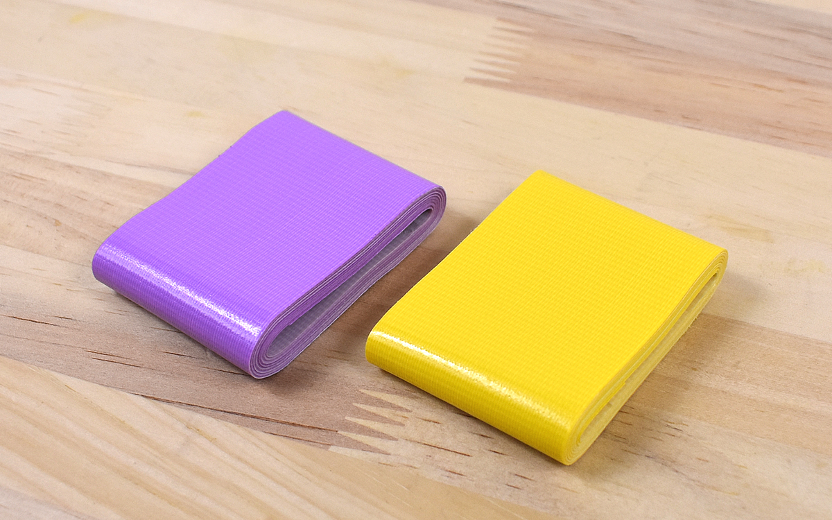 可愛いクマのイラストが描かれたパッケージに入っている同商品。「PEラミ布」は一般的に「布テープ」と呼ばれる素材で作られています。今回ゲットしたカラーは、「パステルパープル」と「イエロー」の2色。どちらも鮮やかな色合いで、どこに貼っても目立ちます。