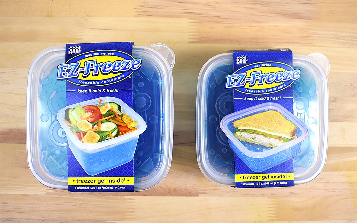●容器を凍らせて食材を保管できる「EZフリーズコンテナスクエア」(クールギア)