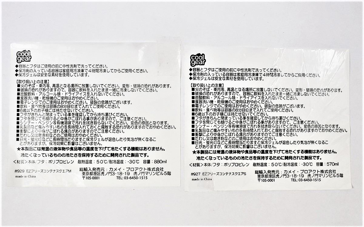 同商品は、容器と保冷剤が一体になったクリアタイプのフードコンテナ。本体もフタもポリプロピレン製で、Mサイズは約880ml、Sサイズは約570mlの容量があります。