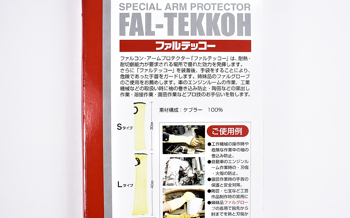 ●刃物や火から腕を守れる「ファルテッコー」(ファルコン)