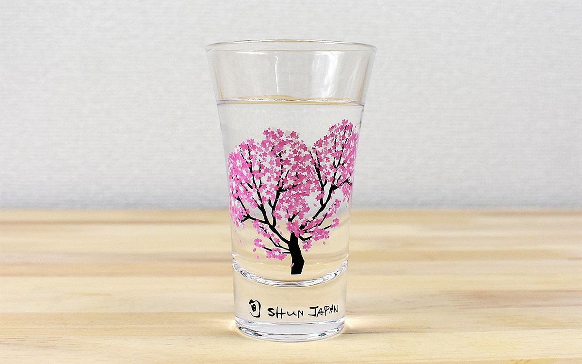 グラスの大きさは約98(高さ)×60mm(直径)で、日本酒を飲むにはちょうどいいサイズ。側面に描かれた桜の絵柄がなんともきれいです。