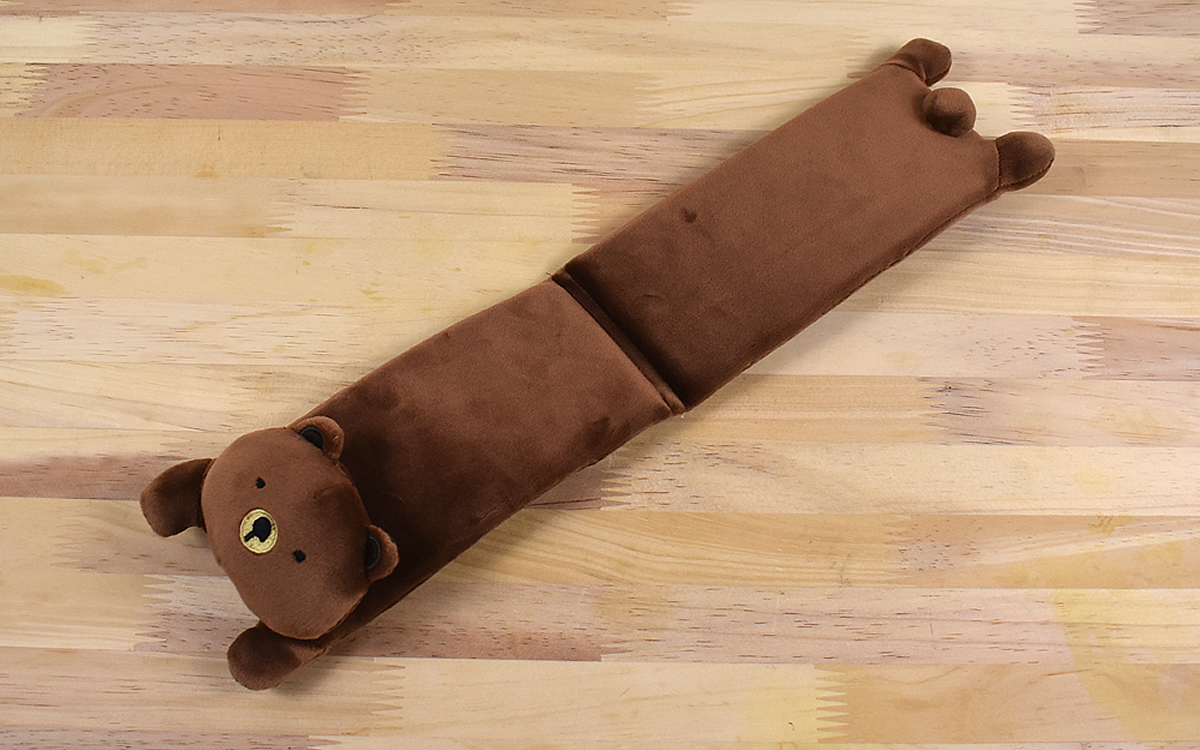 毛足の短い起毛生地の中に、ポリウレタン樹脂とポリエステル100%の綿が詰め込まれている同商品。大きさは約400(全長)×85mm(幅)と細長く、真ん中から2つに折りたためるようになっています。