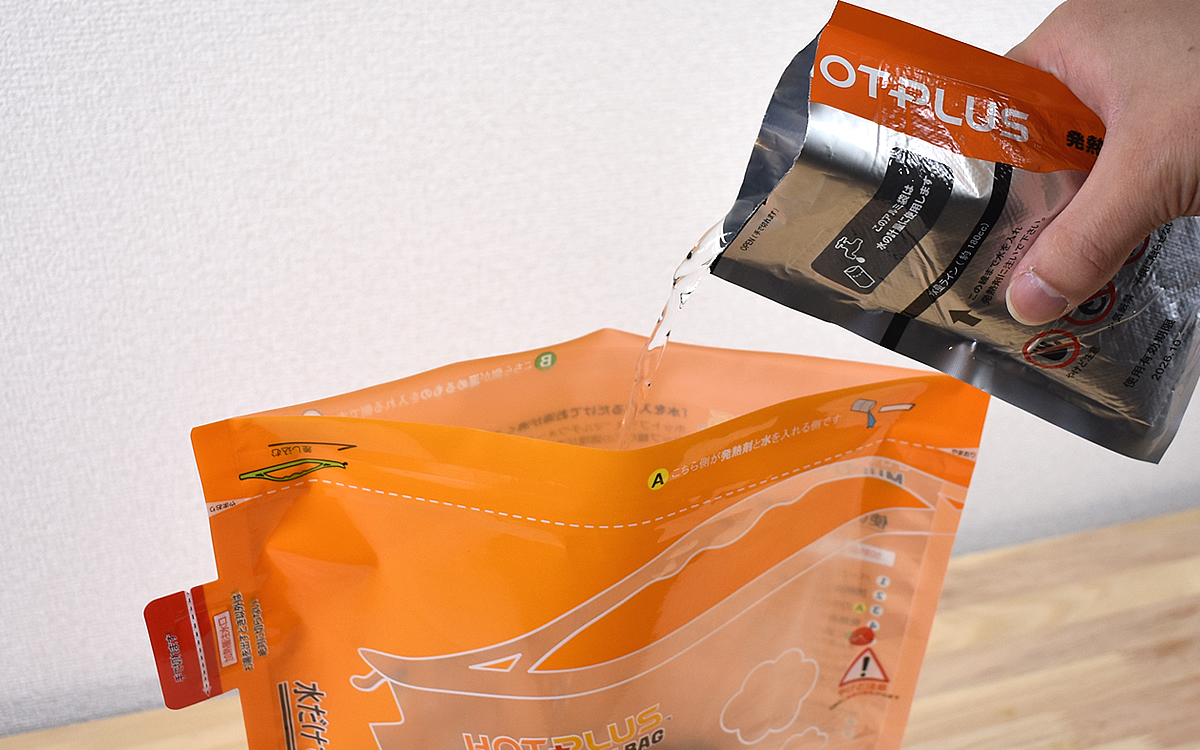 ●水を注ぐと加熱が始まる「ホットプラス マルチウォームバッグ」(山本商事)