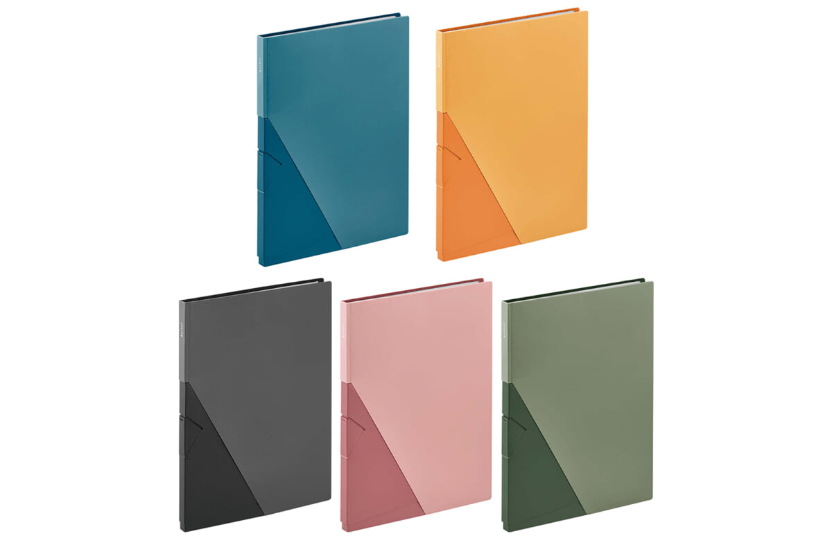 背の部分が3ステップでスタンドになり、書類を入れたまま自立するファイル。中面は書類ポケットになっており、立てたままページをめくれる。片付けるときは、閉じるだけでOKだ。※3月26日発売