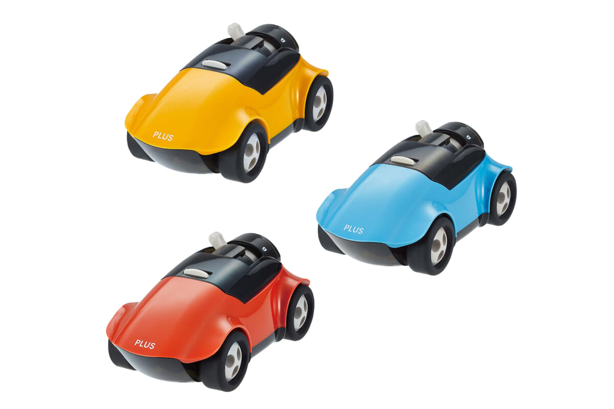削るのが楽しくなるクルマ型の鉛筆削り。車体の上に手を置いて、力を加えながら前後に走らせて削る。削り終わりを音で知らせる「トンガリ検知機能」が削りすぎを防ぐ。替刃が2個付属。