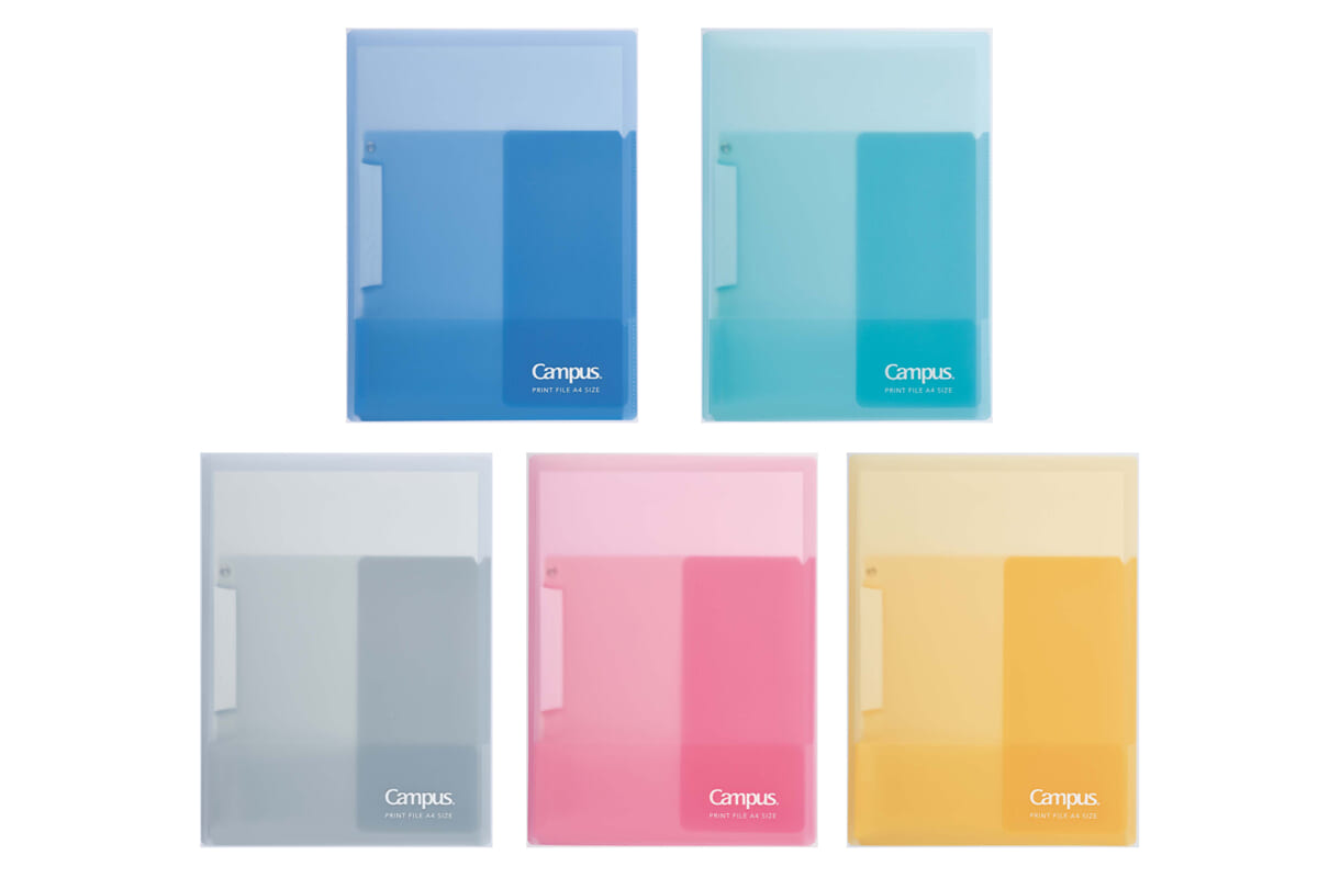 復習に使うプリントを冊子状に綴じられるクリップと、プリントの保管用ポケット、浅めのポケットを搭載した見開きファイル。表紙を裏側に折り返せば、電車内などの狭い空間でも閲覧しやすい。