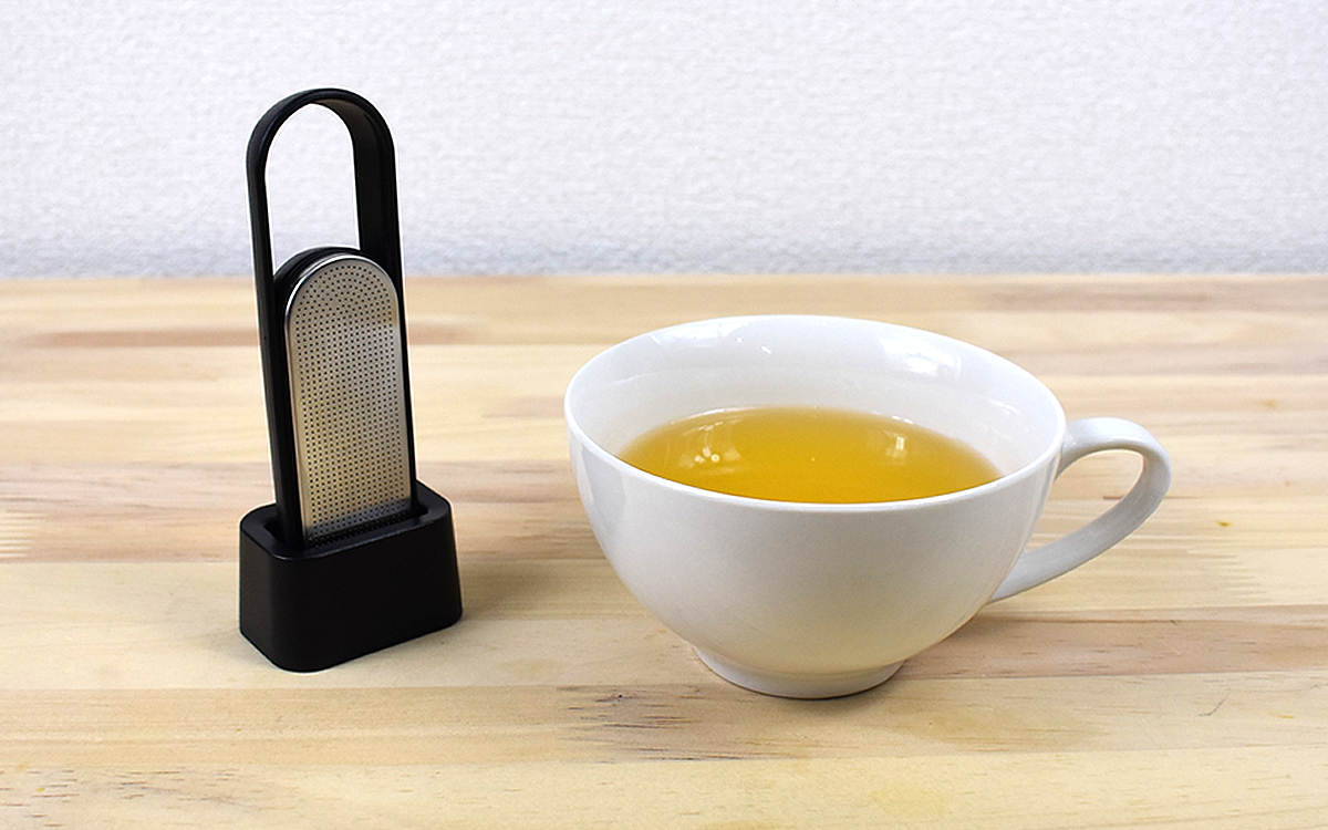 スティック型の茶こしとスタンドがセットになっている同商品。しかし、一般的な“茶こし”とはイメージが異なる洗練されたデザインです。実際に持ってみるとかなり軽く、扱いやすそうなのも高評価。
