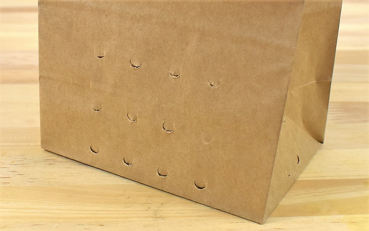 袋の下側面には小さな穴があり、ここから水が流れ出る構造に。押さえるように水気を切ってからゴミ箱へ捨てれば、簡単に生ごみを処分することができます。