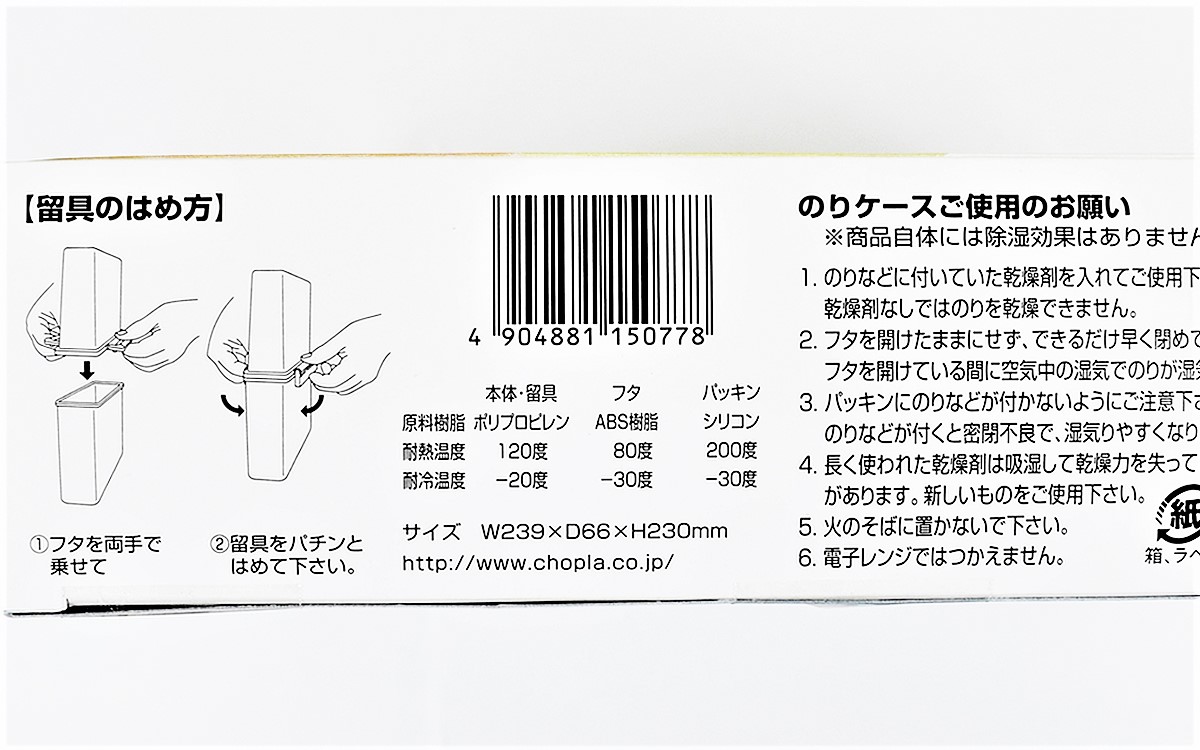 「蝶プラ工業」から販売されている「のりケース たて型」(1650円/税込)は、海苔専用の保存ケース。SNS上でも「全形サイズの海苔が入るのはうれしい」「スマートなデザインなのでスペースをとらなくて助かります」「海苔専用のケースって珍しいね」と注目を集めています。それでは、実際に使い心地を確かめていきましょう。
