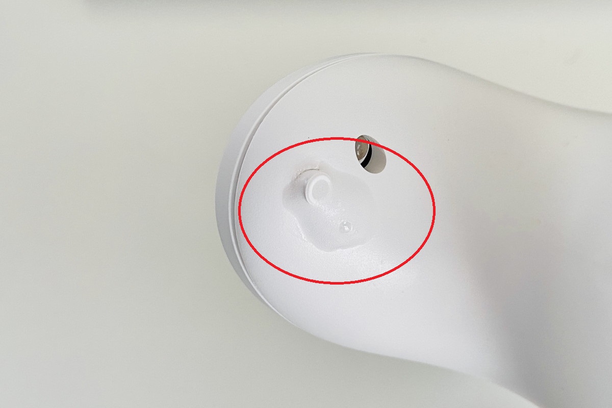 使っているうちにひとつ気づいたのは、本体の噴射ノズルのあたりにハンドソープ液が残ってしまうこと。ノズルの液切れは悪くないのですが、手の位置によっては泡がノズル付近に付着してしまうようです。ここはたまに拭いてあげるといいでしょう。