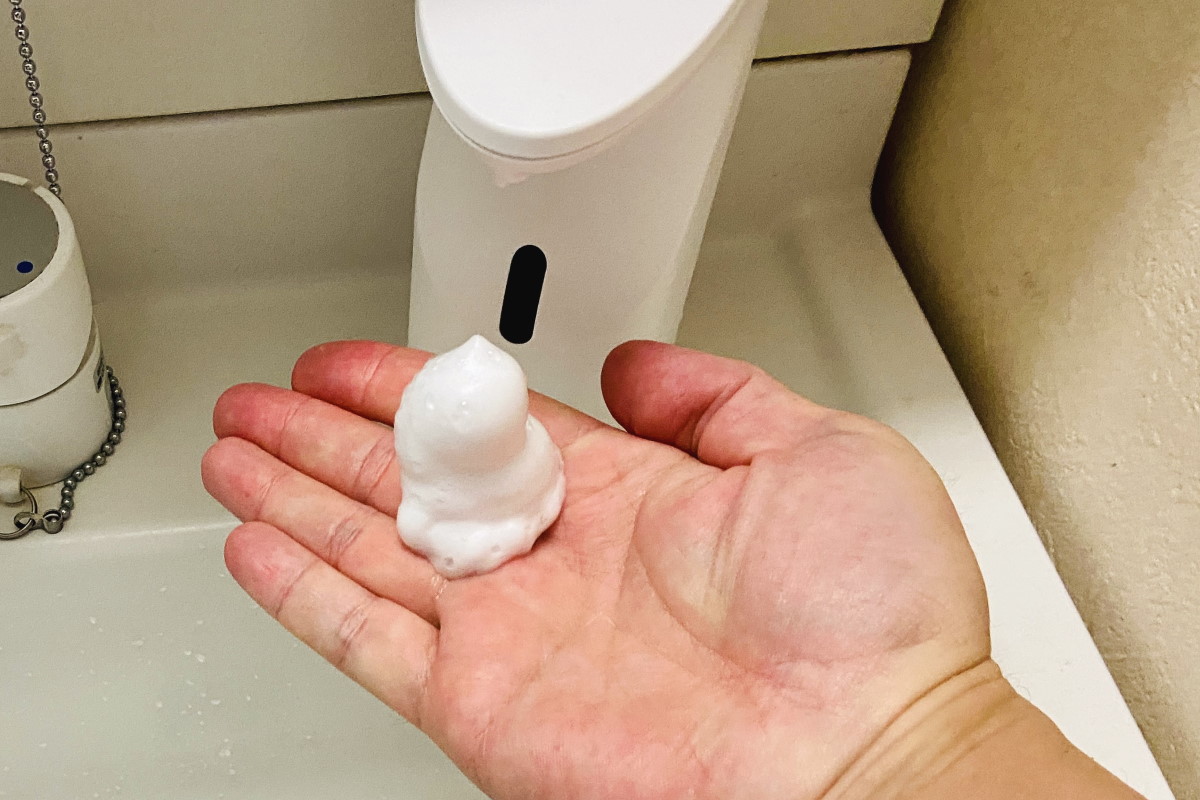 発売されてから1ヶ月以上使っていますが、手を触れずにハンドソープが噴出されるのは、思った以上に快適です。我が家は自宅入り口近くの洗面台に置いて、帰宅時にすぐ手が洗えるようにしていますが、料理で手が汚れたときにも便利そうだと思い、キッチン用にもう1台購入することを検討しています。
