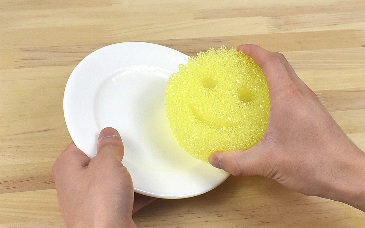 可愛いスマイルデザインのスポンジ「Scrub Daddy」の「Scrub」とは、英語で「ごしごし洗う」という意味を持ちます。その名前の通り、いろいろな汚れを落としてくれる性能があります。