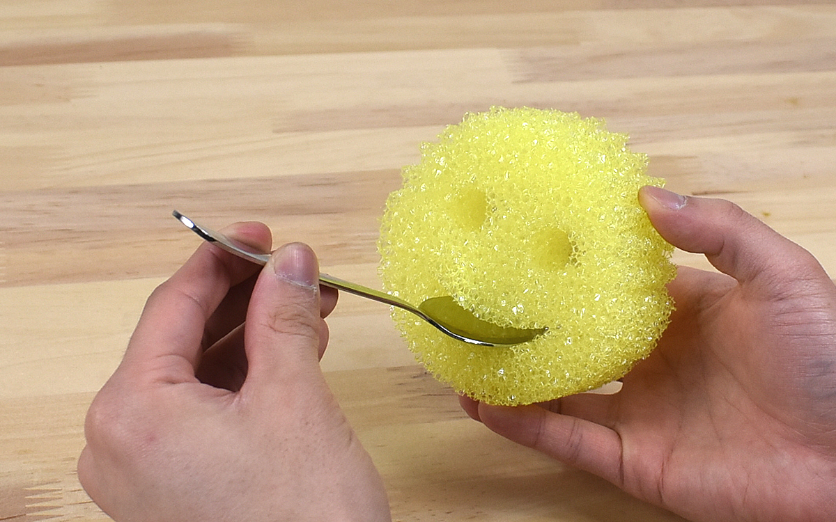 形や用途が様々なキッチングッズを、1つのスポンジで洗うのはなかなか難しいもの。とはいえ調理器具の他に、食器やグラスなどデリケートな素材もきれいに保ちたいですよね。そこで、洗い物の悩みを解決するため、使い勝手がよさそうなスポンジを探していたところ、東急ハンズで「Scrub Daddy」(528円/税込)を発見。温度でやわらかさが変わる特殊素材を使った万能スポンジということで、購入してみました。