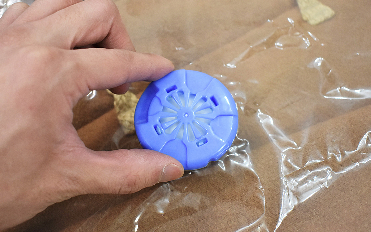 あとは袋の片側についているバルブに掃除機のノズルをあてて吸引するだけ。ノズルを垂直にあてながら吸引しきったら、掃除機のスイッチを切って圧縮完了です。