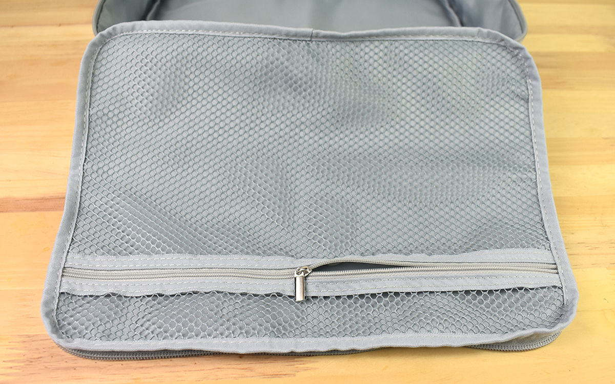 メッシュポケットがついているのも、うれしいポイント。バッグの中でバラバラになりがちな小物たちを、しっかり収納してくれます。たとえばハンカチや靴下などを入れておくと便利でしょう。