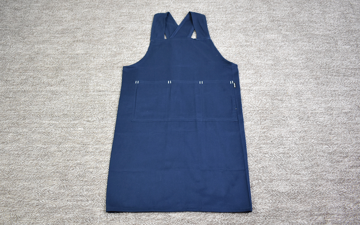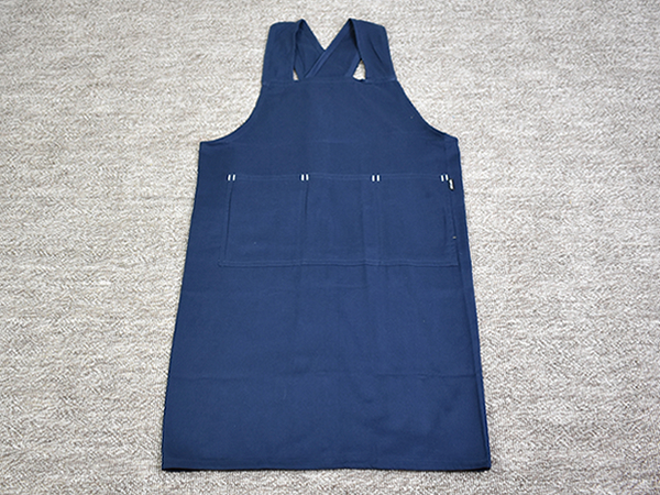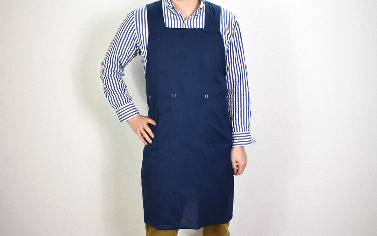 同商品は肩の部分がクロスするようにできていて、着用する際は商品名の通り“すっぽり被る”だけ。背中から腰にかけて生地が交差するため、フロント側へ勝手に広がってしまう心配がありません。ふわっと羽織るような感覚で窮屈な印象はなく、動きやすさを感じました。