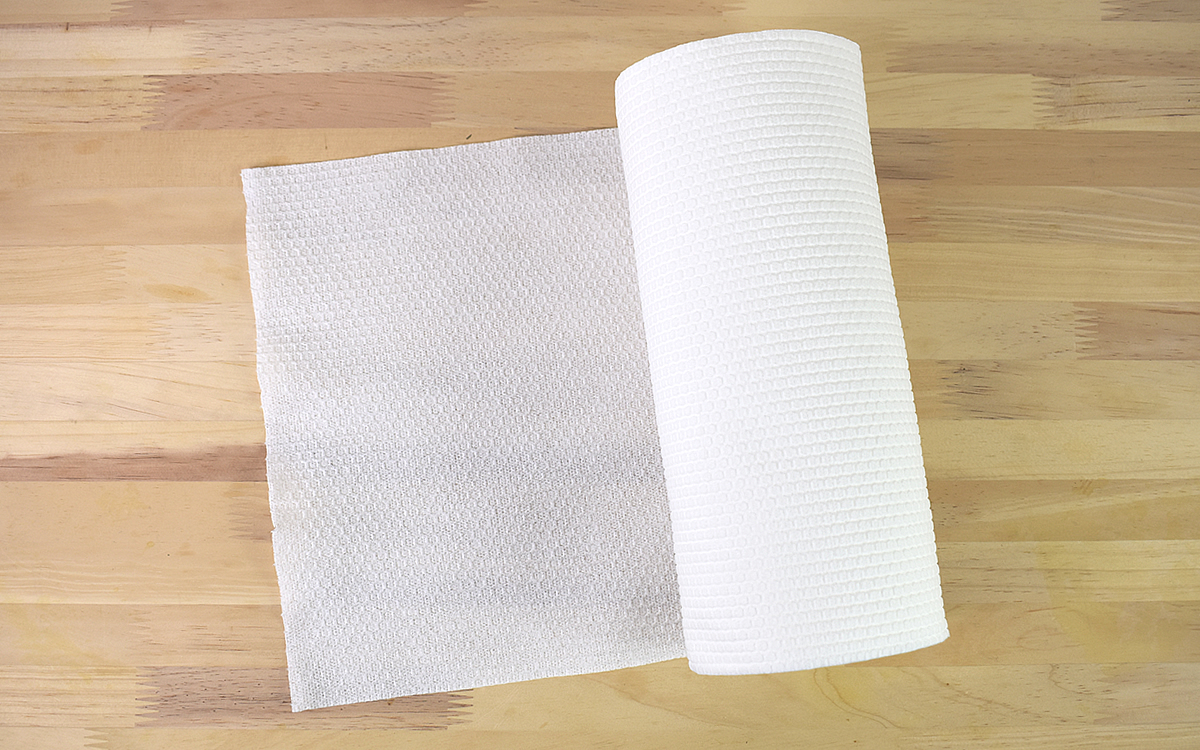 ロールから1枚切り離した同商品は、従来のペーパータオルやキッチンペーパーと変わらない印象を受けます。ところが手で引っ張ってみると、丈夫な作りに驚きました。軽く伸ばした程度では、ペーパーが破れる気配はありません。
