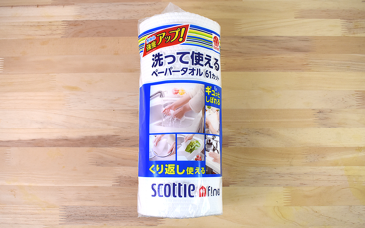 毎日のように使うキッチン。料理をすればするほど汚れがつきやすく、衛生的にもしっかり掃除したい場所ですよね。ふきんで拭いてもその後の管理が大変で、毎回キッチンペーパーを使用するのはもったいない気もします。そこで、何か便利なアイテムはないか探していたところ「スコッティ ファイン 洗って使える ペーパータオル 61カット 1ロール」(315円/税込)という商品を発見しました。