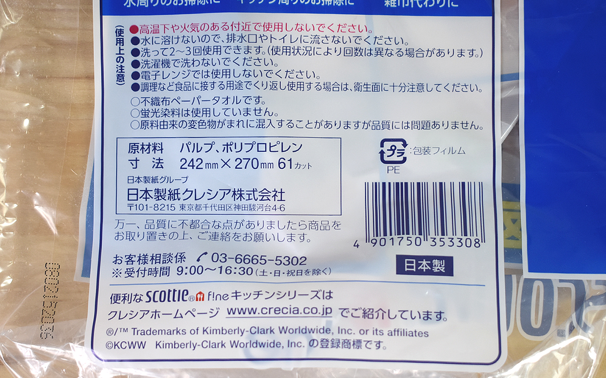 ●水分を吸収しても破れにくい「洗って使える ペーパータオル」(日本製紙クレシア)