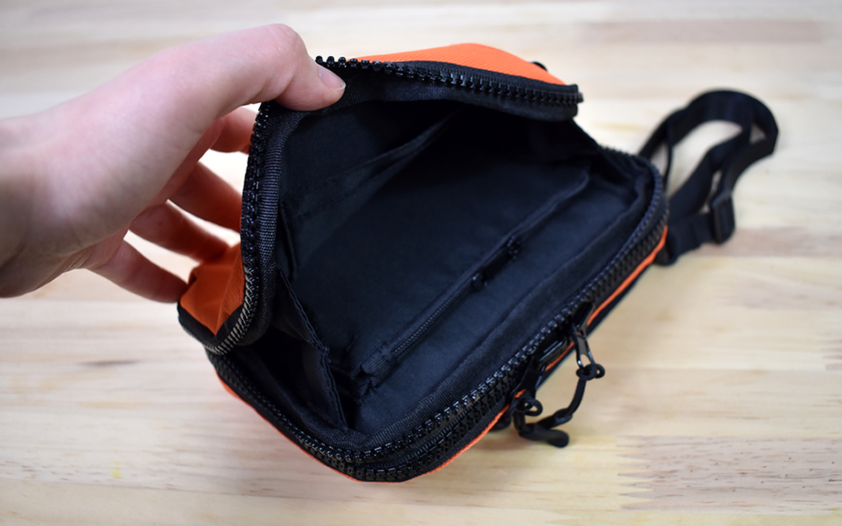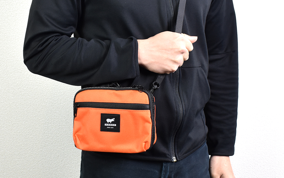 実際に肩から掛けてみたところ、ポーチとしてサイズ的に申し分なし。表面・背面は小物入れとして使えるため、スマホやポケットティッシュなどを入れて持ち歩くのにぴったりです。