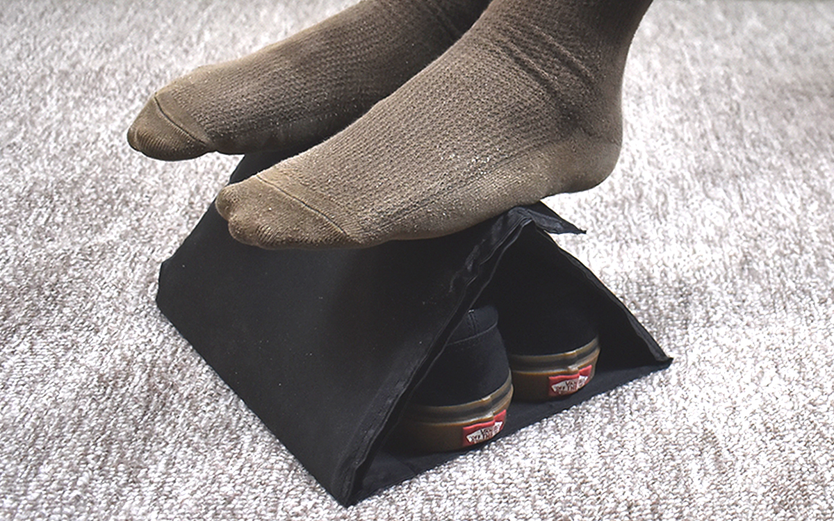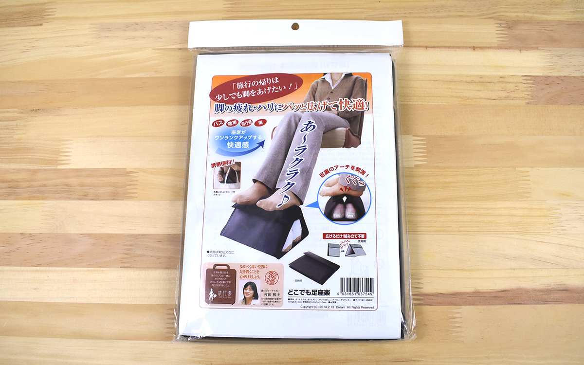 旅行や出張で利用する、車・バス・新幹線・飛行機。距離が遠ければ遠いほど乗っている時間が長くなりますよね。そんな時に困るのが足の置き場で、じっと動かさないまま足を床につけていると疲れてきますよね。そこで、何か移動時に活躍するグッズはないかと東急ハンズで探していたところ、「どこでも足座楽」(2075円/税込)を発見。パっと広げて足を置く台の役割を果たしてくれる商品ですが、その使い心地をじっくり確かめていきましょう。