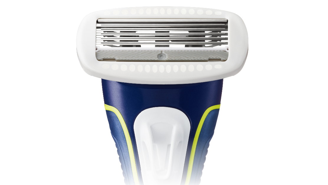 ボディ用シェーバーには、フェイスシェービング用の刃とは異なる断面形状と傾斜角度に設計された、肌に優しいスキンフィットの5枚刃を採用。摩擦を軽減する「スキンガード」と、水に触れると溶け出すヒアルロン酸配合の「モイスチャージェル」により、肌の負担を抑えてやさしく毛を剃ることができます。