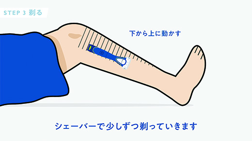 トリミングで整えたら、5枚刃を使って少しずつ剃っていきます。剃り終えたあとはシャワーなどで洗い流しましょう。