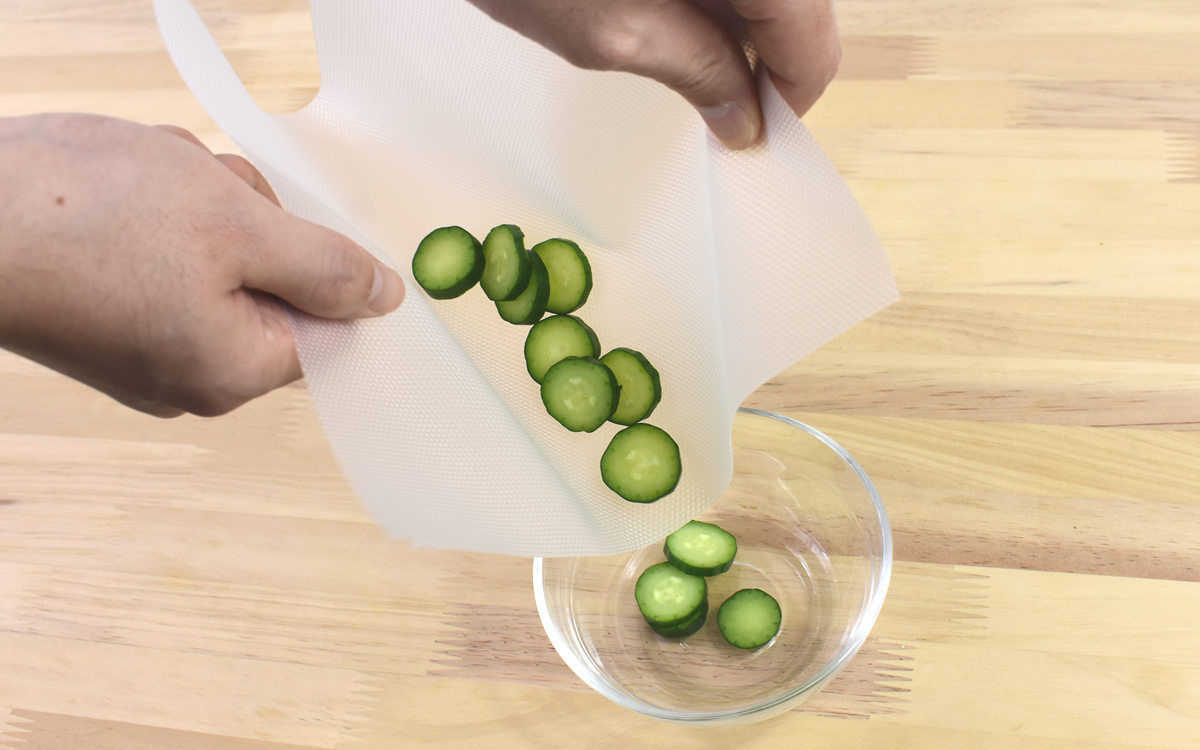 シートは色移りやにおい移り対策に適しているだけでなく、切った食材をスムーズに移動させられるのも大きなポイント。使用後は洗えば再利用できるため経済的でもあります。ちなみに同商品は、すべり止めシートやランチョンマットとしても使えます。