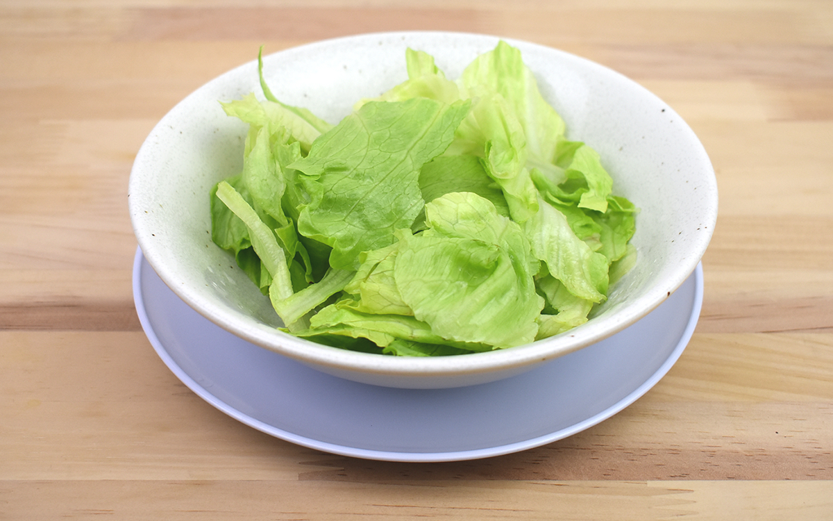 試しにレタスを乗せてみましたが、サイズ的に1~2人分にぴったり。レンジに対応しているので、下皿にお湯を注ぎラップをして温めれば蒸し料理も楽しめますよ。