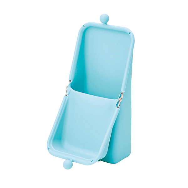底面に備えた吸盤で、自立型ペンケースの弱点である「倒れやすさ」を克服。貼り付けて逆さにしても落ちないほどの吸着力を誇る。シリコーン製で、水まわりでも気軽に使える。税込1540円〜