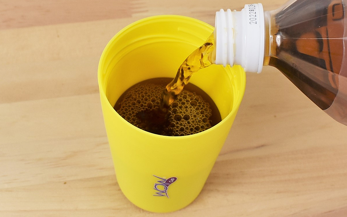 使い方はとても簡単。まずは、お好みの飲み物をカップ本体に注ぎましょう。