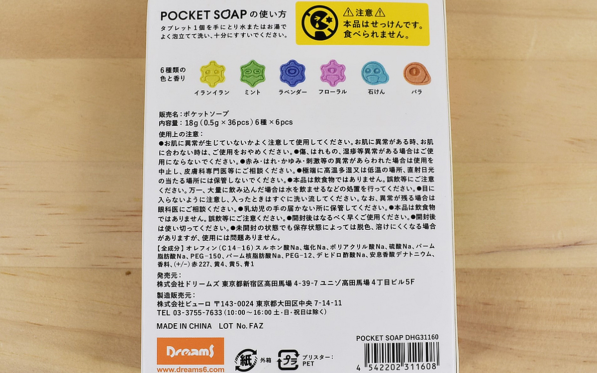 アイデア雑貨で生活に癒しを与えるメーカー「ドリームズ」は、衛生用品も数多く展開中。発想に富んだ商品の中から、今回はかわいらしいフォルムが目を引く「POCKET SOAP」を紹介していきます。過去にフジテレビ系列で放送している「めざましテレビ」で紹介され、ネット上では「かわいいデザインなので、ウチの子も楽しく手を洗ってくれるかも」といった声が上がり、注目が集まった模様。手洗いの時間を楽しくしたいという方、必見の石けんですよ。