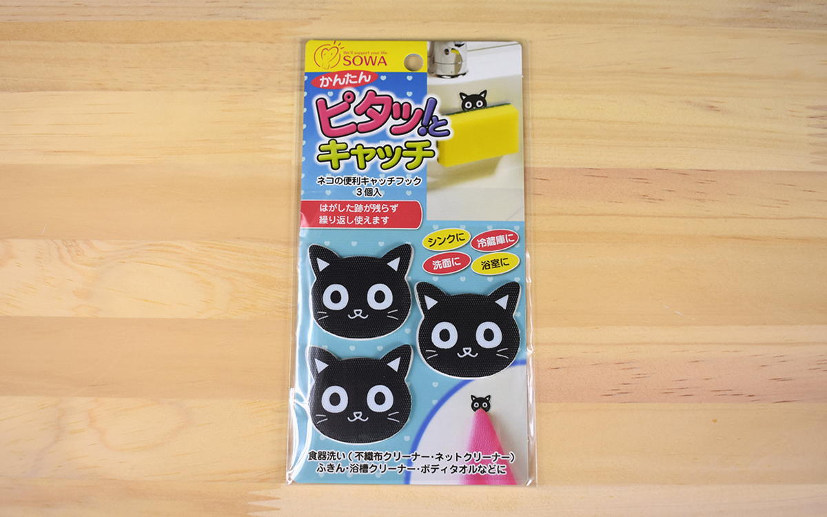 キッチンや洗面所などの水周りには、食器洗い用のスポンジ、ふきん、タオル、クリーナーといったアイテムが必要不可欠。とはいえ、水切りやタオル用ハンガーはどうしても場所を取りがちなので、少しでもコンパクトなアイテムが欲しくなりますよね。そこで「これは便利そう!」と気になったのが、東急ハンズで販売されている「ネコの便利キャッチフック3個入」(303円/税込)。キュートなネコの表情に惹きつけられて、購入してみました。