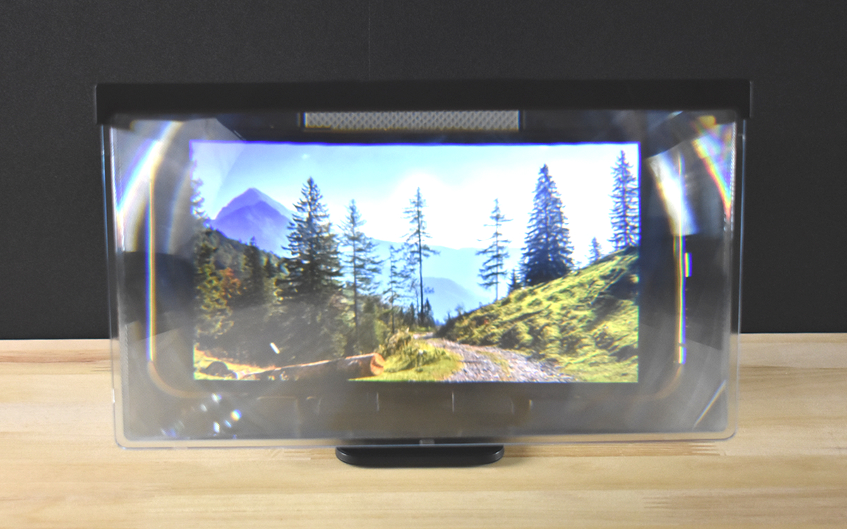 12インチまで拡大できるレンズだけに、動画や写真を表示すると普段のスマホ画面とは明らかに異なるスケール感が。画像の通り、まるで美しい風景に包みこまれるような迫力がたまりません。