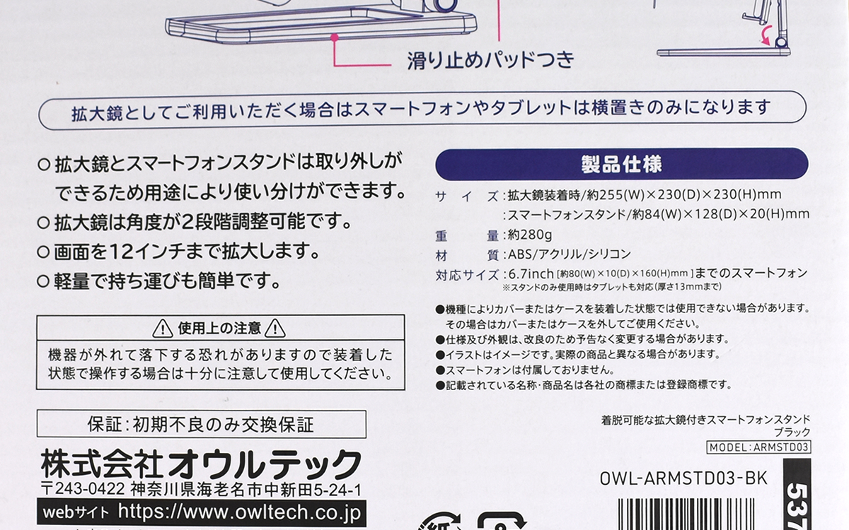 ●拡大鏡を外してスタンド単体でも使える「2WAY スマートフォン拡大鏡スタンド」(オウルテック)