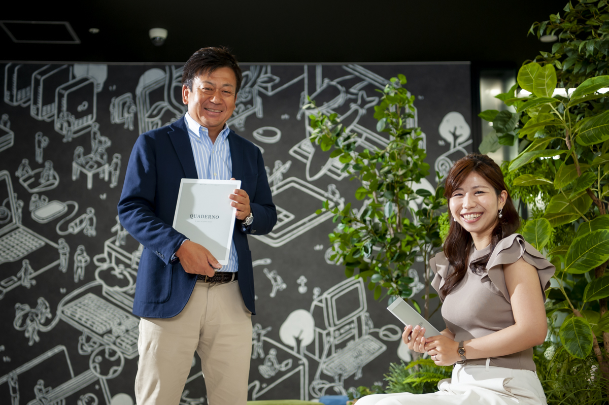 そのクアデルノが2021年6月にハードウェアを一新し、大きな進化を遂げました。生まれ変わった「QUADERNO (Gen. 2)」の魅力と開発にあたっての指針について、コンシューマ事業本部 マーケティング支援統括部 松下季氏、小池泰弘氏に話を伺いました。