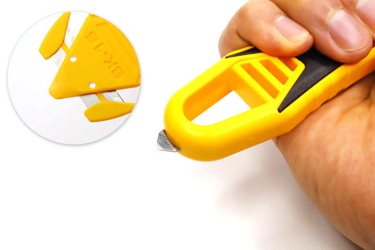 で、その万能性の根幹となっているのが、左右に張り出した金属刃である。さすがオルファの刃だけあって、切れ味は抜群。かつ、先端ガードのおかげで刃が手に触れることもないため、非常に安全だ。