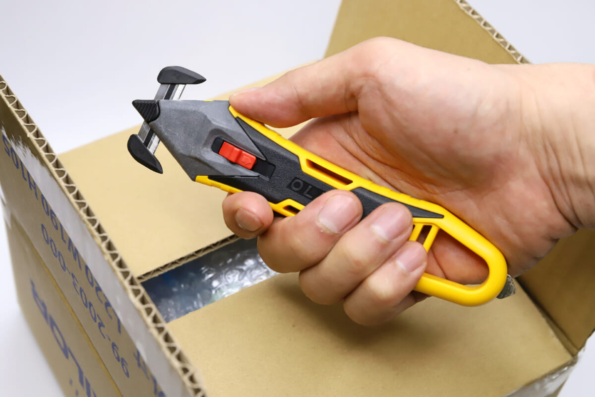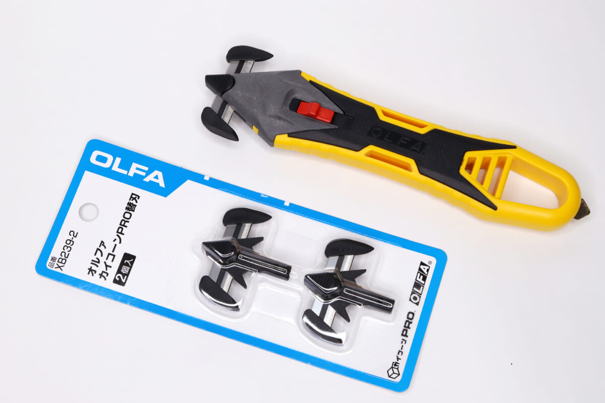 そんな開梱ツールの中でも人気が高いのが、オルファの「カイコーン」である。2020年には、雑誌『GetNavi』で限定ブラックカラーバージョンが付録になったこともあって、持っているという人も多いかも知れない。ダンボールだけでなく、フィルムシュリンクや厚紙封筒タイプのパックなど、様々な梱包に対応した万能性の高い製品だ。