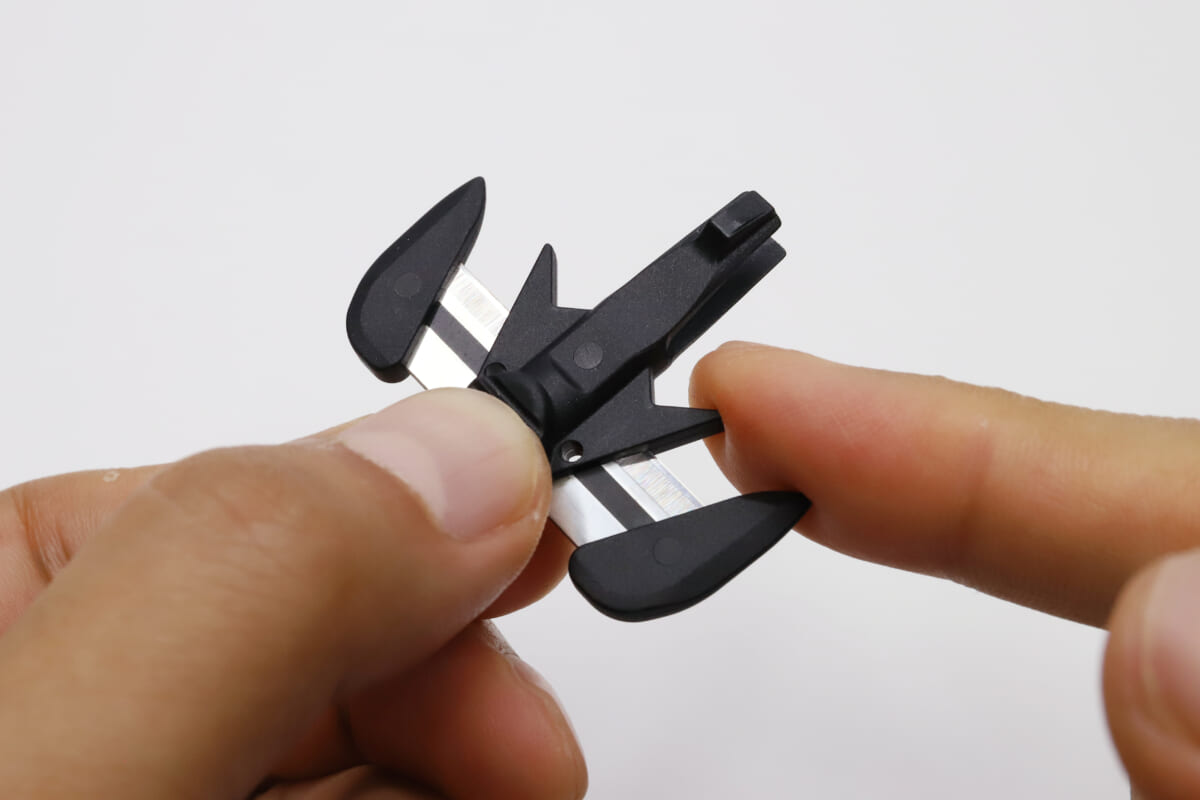 しかし、実機を触って安心した。この替え刃、めっちゃガッチリ固定されている! 刃の先をつまんで揺らしてもほぼガタつかず、これなら作業時の切りづらさは感じないはず。