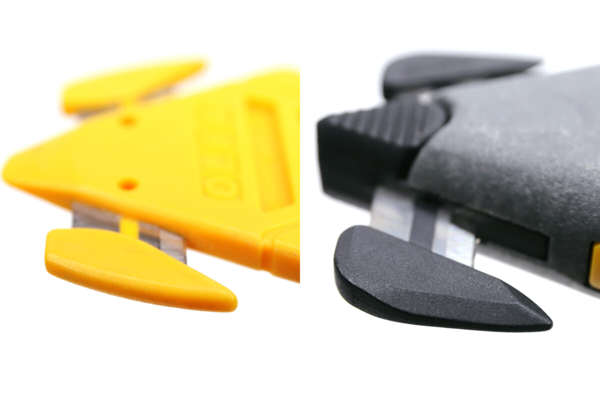 このガードは、尖った先端を切りたい場所に差し込むことで、刃のガイド役も果たしているのだが、当然、鋭いほうが差し込みやすくて使いやすい。本当に、細部にわたって改良されているなーという印象だ。