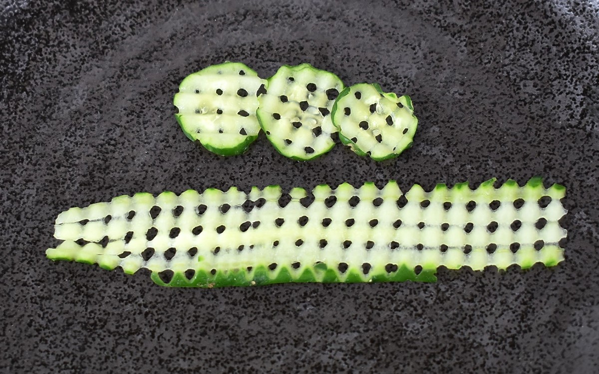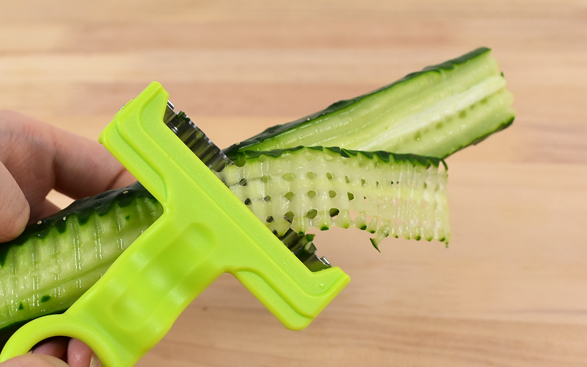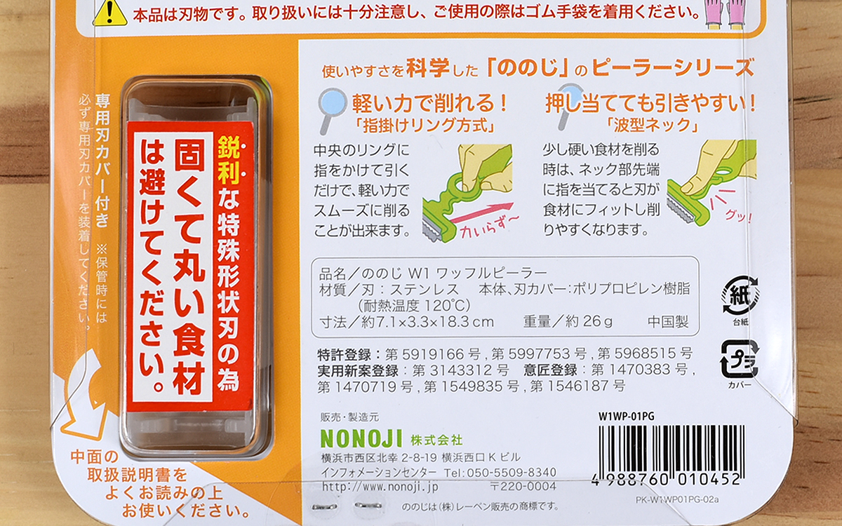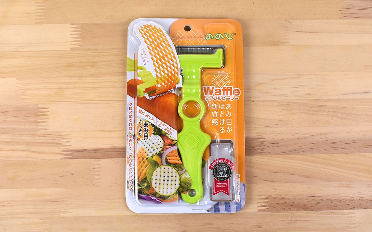 ●誰でも簡単に食材を“網目状”にできる「ワッフルピーラー」(ののじ)