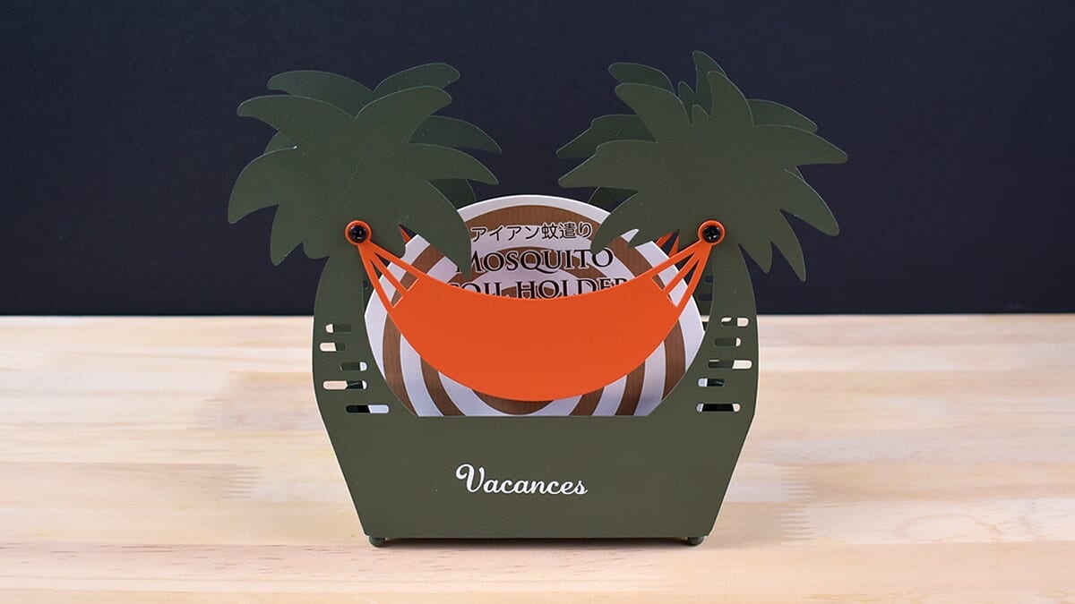 使い方はいたってシンプル。内側の突起に蚊取り線香をセットして火をつけます。金属製で丈夫なので、野外で使うのにもピッタリ。キャンプやBBQで活躍するのはもちろん、庭でDIYしたりベランダでまったりするときにもオススメですよ。