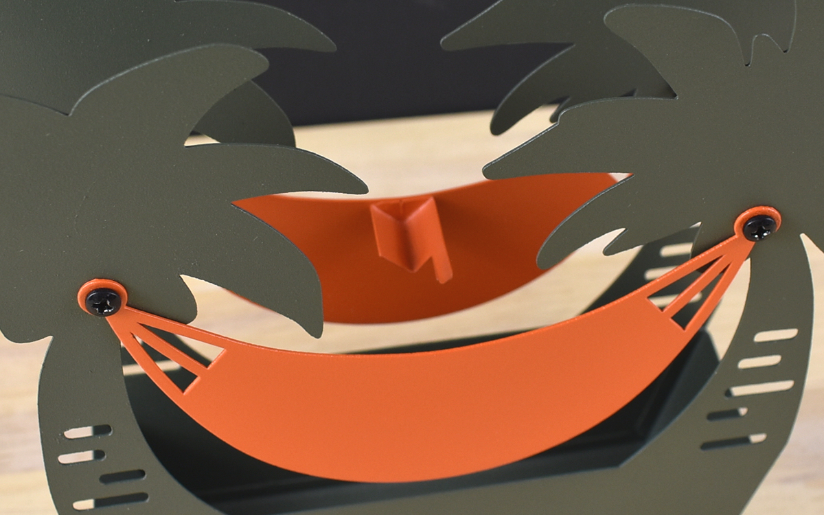 様々なバリエーションが展開されていますが、今回はヤシの木とハンモックをモチーフにした夏らしい「リゾート」をチョイスしました。色が抑えめで飽きないデザインはどんなインテリアにも合いそう。写真を撮るときに写りこんでも雰囲気を壊さないのがうれしいですよね。